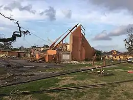 In all, the tornado significantly damaged or destroyed at least 638 homes and 40 businesses along its 10.1-mile-long (16.3 km) path, and hundreds of trees and power poles were snapped. Thirty-three people were injured, six severely; however, no fatalities took place.[31] Two public schools— Schaumburg Elementary and Einstein Charter School—both sustained some damage to buildings and property, with collective damage reaching $1.7 million.[33] NASA's Michoud Assembly Facility suffered more than $1 million in damage.[34] At the time, it was the strongest tornado to strike the New Orleans metropolitan area. However, it would be surpassed on March 22, 2022 by a high-end EF3 tornado, which killed one person and injured multiple others as it caused considerable damage in Arabi.[35][36]