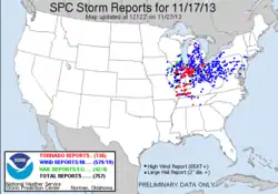 - 1 2 "131117's Storm Reports (1200 UTC − 1159 UTC)". Storm Prediction Center. National Oceanic and Atmospheric Administration. November 17, 2013. Retrieved November 17, 2013.