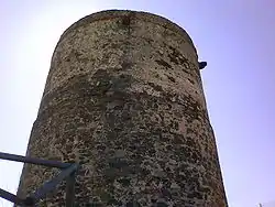 The construction of the Torre del Catalán is part of Philip II's plan to defend the coast against the incursions of Barbary pirates through the construction of watchtowers.[4] The Discovery of America and trade with the Indies caused an increase in piracy on the Atlantic coast of Andalusia in the 16th century. This provoked a series of inspections and proposals between 1570 and 1576, which advised the erection of these towers along the coast.[10] El Comendador de Hornos, Luis Bravo de Lagunas, visited the towns on the coast of Huelva and met with the aldermen of Lepe and the notary public on August 5, 1577 to communicate the royal order to build a watchtower and fort in El Terrón and a watchtower in Sierra Bermeja. The local authorities were willing to comply, but later argued against the obligation to assume the construction costs, understanding that it was more beneficial to the city of Seville than to themselves. The same position was adopted by the Marquis of Ayamonte, the Duke of Béjar, the Count of Miranda and the Duke of Medina Sidonia.[11] In 1584, the Crown sent the lawyer Gilberto de Bedoya to promote the construction of the towers by distributing and collecting the corresponding costs from the nobles. Drake's expedition of 1587 in the Bay of Cadiz increased the interest in accelerating the construction of the coastal defensive towers and it is recorded that the Torre del Catalán was rising in June 1587 to a height of twenty feet, that is to say, about 5.60 meters high.[5] Gilberto de Bedoya was removed from the project and the works were paralyzed for a few years. In 1590 the Council of Justice issued an order obliging the nobles to build and pay for the towers and it was after the appointment of Fernando Álvarez de Bohórquez as commission judge that the work on the Catalán tower was completed, already concluded in a visit on June 13, 1597.[12] The two-phase construction can be seen visually through a brick cordon that separates the two phases and the smaller diameter of the upper phase, where the chamber, the entrance hall and the stairway leading to the roof are located.[13]