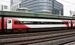 Six Class 67 locomotives have been adapted to work with three sets each comprising four Mark 4 carriages and a Mark 4 Driving Van Trailer, which will replace the Mark 3 stock previously used on locomotive-hauled services. The twelve carriages and three DVTs were able to cascade from London North Eastern Railway, as a result of the introduction of Class 800s and Class 801s on the East Coast Main Line. The Mark 4 coaches have retained the Virgin Trains East Coast livery, but with Transport for Wales labels attached. The Mark 4 Driving Van Trailers will be repainted into the new Transport for Wales livery. Four of the six Class 67 locomotives have been repainted into TfW Rail livery. TfW Rail introduced the Mark 4 sets in June 2021 on Cardiff to Holyhead services, and from December 2022 they will operate services between Swansea and Manchester using trains which had previously been planned to be used on the Blackpool route by Grand Central.[37] The three Mark 4 sets will be retained and will remain on the routes they will work from their date of introduction on TfW Rail services.