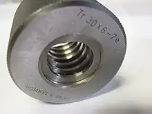 The trapezoidal metric thread form is similar to the Acme thread form, except the thread angle is 30°.[4][5][6] It is codified by DIN 103.[7] While metric screw threads are more prevalent worldwide than imperial threads for triangular thread forms, the imperially sized Acme threads predominate in the trapezoidal thread form.