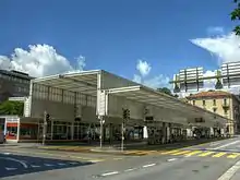 Between 2000 and 2002, a new bus station was constructed on the Piazzale Ex-Scuole in central Lugano for use by the TPL. The station was designed by the architect Mario Botta, and has a central, 7 metres (23 ft) high nave with two 5 metres (16 ft) high side aisles, with a translucent plexiglas covering.[12]