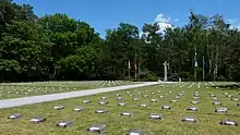 There was the Treuenbritzen subcamp of the Sachsenhausen concentration camp. Among others it held Italian internees, who were (some of) Italian soldiers deported to Germany after Italy left the Axis powers in 1943. They worked in a small local ammunition factory. In 1943 the Soviet Army liberated the camp, but in two days, on April 23, 1945 the Wehrmacht returned and the Germans executed 127 Italian POWs in the nearby Nichel forest. In several months after the war the massacred were reburied in the forest and later some of them were reburied in Italy and some in the Italian section of Waldfriedhof Zehlendorf, Berlin. [1][2]