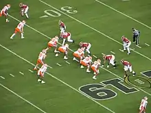 Ahead of the final week of preseason, Lawrence was named the Jaguars' starting quarterback for 2021.[48][49] Making his NFL debut against the Houston Texans, he finished with 332 passing yards, three touchdowns, and three interceptions in a 37–21 defeat. The loss was Lawrence's first in a regular season game.[50] In his second game against the Denver Broncos, he threw a touchdown pass on the opening drive, but completed only eight of 25 passes afterwards and was intercepted twice as the Jaguars lost 23–13.[51] Lawrence had a stronger performance when he faced the Cincinnati Bengals in the Week 4 Thursday Night Football matchup, completing 17 of 24 passes for 204 yards and scored his first rushing touchdown, also making it his first NFL game without an interception. Despite his efforts, the Jaguars lost 24–21.[52]