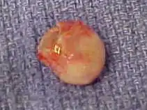 | Trichilemmal cyst: Note the thick, durable, white shell | |