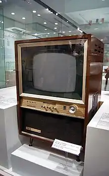 Sony had entered the television market in 1960 with the black and white TV8-301, the first non-projection type all-transistor television.[6] A combination of factors, including its small screen size, limited its sales to niche markets. Sony engineers had been studying the color market, but the situation in Japan was even worse than the U.S.; they accounted for only 300 of the 9 million sets sold that year.[5] But by 1961, dealers were asking the Sony sales department when a color set would be available, and the sales department put pressure on engineering in turn. Masaru Ibuka, Sony's president and co-founder, steadfastly refused to develop a system based on RCA's shadow mask design, which he considered technically deficient. He insisted on developing a unique solution.[7]
