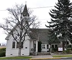 Trinity Episcopal Church is a historic Episcopal church at 44 N. 2nd Street in Ashland, Oregon. It is also the oldest church in Ashland.[2] Constructed in 1894 and completed in 1895, its design was based on drawings by local builder W. J. Schmidt.[2] Built in the Gothic Revival style, it features a pitched gable roof, a pointed west-facing window, a gabled south-facing porch, and a trussed rafter roof.[2] The church was added to the National Register of Historic Places in 1984.