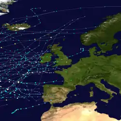 Advanced meteorological observation stations and ship reports allowed Atlantic hurricanes to be tracked for extended durations, including to the European mainland in some cases, beginning in the 1860s. Most storms that affected Europe have done so from August to October, which is the climatological peak of the Atlantic hurricane season. In a survey of such European tropical cyclones from 1961 to 2010, Dr. Kieran Hickey observed that the storms generally formed west of Africa and recurved to the northeast, or formed off the east coast of the United States and proceeded eastward. Ireland and the United Kingdom experience the most effects, due to their positions far to the west of the rest of Europe. Countries that are as far to the east as Estonia[2] and Russia[3] have experienced tropical cyclone impacts.