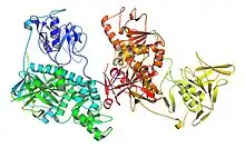 - 1 2 3 Fyfe PK, Oza SL, Fairlamb AH, Hunter WN (June 2008). "Leishmania trypanothione synthetase-amidase structure reveals a basis for regulation of conflicting synthetic and hydrolytic activities". J. Biol. Chem. 283 (25): 17672–80. doi:10.1074/jbc.M801850200. PMC 2427367. PMID 18420578.