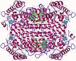- ↑ Lewis-Ballester A, Batabyal D, Egawa T, Lu C, Lin Y, Marti MA, Capece L, Estrin DA, Yeh SR (October 2009). "Evidence for a ferryl intermediate in a heme-based dioxygenase". Proceedings of the National Academy of Sciences of the United States of America. 106 (41): 17371–17376. Bibcode:2009PNAS..10617371L. doi:10.1073/pnas.0906655106. PMC 2765089. PMID 19805032.
