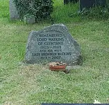 Lord Watkins died on 2 November 1983. He was cremated and his ashes buried in the churchyard of St David's Church, Llanfaes, Brecon. His wife's ashes are also buried there. His papers are in the holdings of the National Library of Wales.[3]