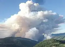 Fed by wind gusts of up to 35 miles per hour (56 km/h) and extremely dry conditions, 25 small fires caused by lightning strikes grew and spread quickly, combining to form larger fires. Firefighters had difficulty fighting them due to the remote location and the rugged terrain, such as basalt cliffs.[3] The fires primarily burned trees ranging from 10 to 45 years old.[4][5]