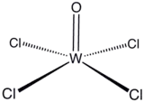 Tungsten(VI) oxytetrachloride is the inorganic compound with the formula WOCl4. This diamagnetic solid is used to prepare other complexes of tungsten. The red crystalline compound is soluble in nonpolar solvents but it reacts with alcohols and water and forms adducts with Lewis bases.