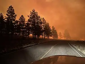 The Tunnel Fire was a wildfire burning in Coconino National Forest and Sunset Crater Volcano National Monument, the Lack Bill Park neighborhood north of the city of Flagstaff, Arizona in the United States, and along U.S. Route 89. The fire was named after a tunnel landmark on Waterline Road, near where it ignited on Sunday, April 17, 2022.[2] On June 3, 2022, the wildfire was declared 100% contained by AZIEN. It had burned 26,532 acres (10,737 ha) and had destroyed 30 homes. No fatalities or injuries were reported.
