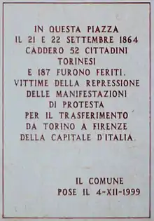 - ↑ "Commemorazione dei morti del 21 e 22 settembre 1864". Gazzetta Piemontese. September 22, 1867. Archived from the original on August 15, 2017.