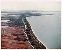 Twin Lakes Beach was once a wide beach, wide enough in fact that cars and off-road vehicles were able to drive on it prompting the Rural Municipality of St. Laurent to pass a by-law in 1987 prohibiting the operation of off-road vehicle on the beaches within the municipality from May 1 to October 15.[8] In more recent years the width of the beach has been reduced in many areas due to a number of factors. According to some residents they have lost as much as 100 feet (30 m) of beach and property combined.[9] One factor is that Manitoba is currently experiencing a wet cycle which is causing lakes all across the province to experience high levels, such as the nearby Shoal Lakes which have now become a single lake. There is also the fact that many cottagers have not allowed the natural vegetation to grow which traps the sand. The regulation of Lake Manitoba may also be a factor. The lake is to be regulated between 810.5–812.5 ft (247.0–247.7 m) above sea level.[10] This involves holding up water at the Fairford Dam in times of low water. While this may benefit some industries and cottagers, in places like Twin Lakes Beach it does not allow the sand to build up dunes around vegetation as it would in a drought. Also, in times of high water on the Assiniboine River, the Portage Diversion is opened normally diverting up to 25,000 cu ft/s (710 m3/s), which is the designed channel capacity, of water into the lake that would otherwise be directed towards Winnipeg and the Red River. This has in the past resulted in an increase in lake levels in which the most evident case was during the 1976 flood on the Assiniboine River (1,420,000 acre-feet (1.75 km3) of water diverted, 1.22 feet (0.37 m) direct rise in water levels).[10] This was passed in terms of volume of water in 2011 as the Portage Diversion took on up to 34,804 cu ft/s (985.5 m3/s) in a desperate attempt to prevent major flooding downstream. Also in 2011, the duration of use of the Portage Diversion was longer than ever before in as it was in operation from April 6 to August 5 running for a total of 122 days due to continued precipitation in the spring and into the summer.[11][12][13]