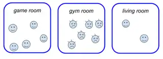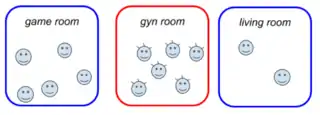 In the above no-tyranny scenario, suppose no floor federation, but (only) a room with some local governance. Suppose that the gym room is not used by all, but there is a "community" of regulars, there is a grouping of voters by its activity as speed-cyclists (illustrated as spiked hair), that have the gym room key for some activities on Sundays. They are acting collectively to preserve the gym room for a local cyclists group.