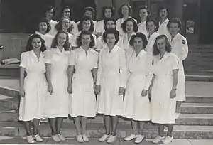 The 1940s was an important period for physical and occupational therapy education with an increased focus on university-based baccalaureate programs.[17] In 1945, the Physical Therapy department was established at USC's University Park Campus with two programs offered: a certificate program for college graduates and a baccalaureate program.[18] Charlotte W. Anderson, who had been a core faculty in the War Emergency Program,[19] was the first chairperson of the Physical Therapy department.[20][21] The Physical Therapy program at USC was accredited by American Medical Association (AMA)[22] in 1946. The first class with a Certificate in Physical Therapy graduated from USC in the same year while the first BS degree candidate graduated in 1947. In order to prepare teachers for physical therapy schools, a post-professional graduate M.A. program was established at USC in 1947 as the second program of its kind in the US. The first MA candidate graduated in 1950. While physical therapy was a fairly new professional field for men at that time, the first male students were admitted to the physical therapy program in 1950.[23]