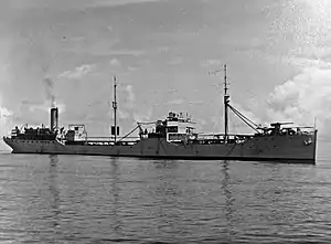 For the duration of the war the oiler cruised along the North American coast, Greenland, and the Caribbean with aviation fuel and diesel oil. Throughout the war Kaweah remained almost constantly at sea on the important, never-ending duty of keeping the fleet supplied with petroleum products. Following the cessation of hostilities 14 August 1945, Kaweah arrived Hampton Roads, Va., 26 September and decommissioned at Norfolk 16 November 1945. She was transferred to the WSA 28 May 1946 and sold to Boston Metals Co., Baltimore, for scrapping.