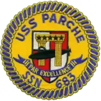 USS Parche (SSN-683), a Sturgeon-class submarine, was the second ship of the United States Navy to be named for the parche /ˌpɑːrˈ/, a small, coral reef butterfly fish. Parche was launched on 13 January 1973, sponsored by Natalie Beshany, the wife of Vice Admiral Philip A. Beshany, and commissioned on 17 August 1974.