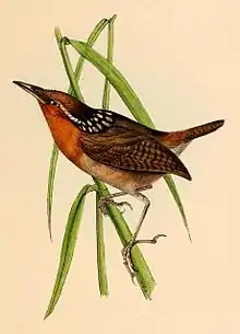 "Uirapuru" is a name, derived from the Tupi language, applied to various members of the bird family Pipridae found in Brazil. The bird whose song Villa-Lobos used as a compositional theme is Cyphorhinus arada, the uirapuru-verdadeiro or musician wren, also known as the organ wren or quadrille wren, a bird with an astonishing variety of song patterns. Villa-Lobos likely based his uirapuru theme on a transcription made during an expedition in 1849–50 by the British botanist Richard Spruce, and published in 1908.[6]