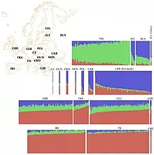 Structure plot of European populations from the Genome Ukraine Project