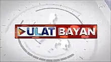 Ulat Bayan (transl. Report (to the) nation) is the flagship national primetime newscast of PTV, Originally anchored by Aljo Bendijo and Catherine Vital, it premiered on July 10, 2017, replacing PTV News and was replaced by the weekday edition of PTV News. The newscasts will be back on September 7, 2020, replacing the weekday edition of PTV News. The newscast airs from Monday to Friday at 6:30 PM to 8:00 PM (PST). and Saturday and Sundays from 6:00 PM to 7:00 PM (PST) and is streamed live on the network's Facebook and YouTube pages with simulcast on IBC on weekends. It is also heard on Radyo Pilipinas 738. The weeknight primetime edition newscasts is now anchored by Bendijo, Diane Querrer and Maan Macapagal currently serves as the main anchors. The weekend editions, meanwhile, is now anchored by Dominic Almelor serves as the sole anchors.