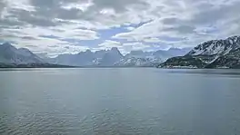 Ullsfjorden (Norwegian) or Moskavuotna (Northern Sami) is a fjord in Troms og Finnmark county, Norway. The fjord runs through the municipalities of Tromsø, Karlsøy, and Lyngen. The 75-kilometre (47 mi) fjord flows from the village of Sjøvassbotn northwards along the west side of the Lyngen Peninsula (where the famous Lyngen Alps are located). The Kjosen fjord branches off to the east side and the Grøtsundet strait branches off to the west (which then flows into the Tromsøysundet). The islands of Reinøya and Karlsøya lie along the western side of the fjord. The southern part of the Ullsfjorden is also known as Sørfjorden. The area surrounding the Ullsfjorden was part of the municipality of Ullsfjord for about 60 years during the 20th century.[1]