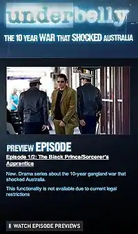 38. 1 2 Tadros, Edmund (27 February 2008). "Advance Underbelly episodes hit the internet". The Age. Melbourne, Australia. Archived from the original on 16 June 2008. Retrieved 2 July 2008.