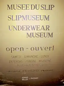 - ↑ "Le "musée du slip", dernière expérience surréaliste à Bruxelles". La Depeche. 2009-06-28. Retrieved 2018-08-27.