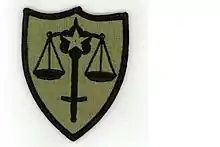 Because of the limited number of TDS attorneys (even the U.S. Army's largest installation, has only about 10 TDS attorneys), the TDS organization was originally not large enough to have its own unit patch (shoulder sleeve insignia). For 25 years, the TDS "unit patch" was World War II-vintage patch of the Army Service Forces. This patch had come to be designated the Department of the Army Staff Support patch and is worn by Department of the Army field operating agencies,[1] including the U.S. Army Safety Center and the Defense Commissary Agency. In August 2006, however, a distinctive unit patch for TDS was approved for wear. From the Institute of Heraldry's description: "The shield-shaped patch reflects the nature of legal defense work. The sword supporting scales of justice represents the unit's mission to defend soldiers at courts-martial and separations boards; seeking justice for all soldiers. The sword also signifies that Trial Defense Service personnel are soldiers as well as lawyers. The glory, mullet, and the red border are adapted from the Department of the Army Staff Support patch previously authorized for wear by the Trial Defense Service, and provides a historical link to its organizational heritage."