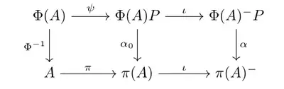 Here ψ is the map that sends a to aP, α0 denotes the restriction of α to Φ(A)P, ι denotes the inclusion map.