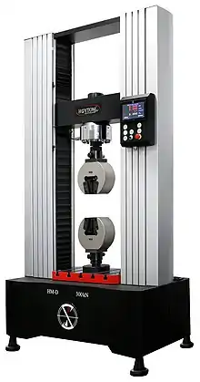 A universal testing machine (UTM), also known as a universal tester,[1] materials testing machine or materials test frame, is used to test the tensile strength and compressive strength of materials. An earlier name for a tensile testing machine is a tensometer. The "universal" part of the name reflects that it can perform many standard tensile and compression tests on materials, components, and structures (in other words, that it is versatile).