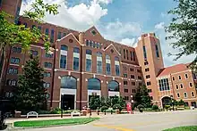 University Center FSU (officially Devoe L. Moore University Center) is a group of four brick buildings that surround Doak Campbell Stadium at the southwest corner of the campus of Florida State University. As the name suggests, the 800,000 ft² complex is the hub of administrative, athletic and booster activities. The brick facade around the stadium matches the architectural design of most of the buildings on the university's campus. Planning and funding began under President Sliger in the early 1990s and construction lasted almost 20 years at a cost of hundreds of millions. Campbell stadium with the University Center "is the second largest continuous brick structure in the world (the first being the Great Wall of China) and the 49th largest stadium in the world."[6][7]