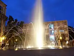 The central axis of the campus comprises the Arch of the Centuries, the Benavides Monument, the Main Building, the Quadricentennial Square, the Miguel de Benavides Library, the Tan Yan Kee Student Center, and the upcoming Henry Sy Sr. Hall.[38] Erected around 1680, the Arch of the Centuries served as the main entrance to the first campus in Intramuros. It was transferred to its present site in 1954.[42] The Main Building, designed by the priest and engineer Roque Ruaño and built from 1924 to 1927, is an architectural jewel and everyone's image of UST. It was the first structure on the campus and once served as the Kilometer Zero of Manila. It houses the Faculty of Civil Law, the Faculty of Pharmacy, the College of Science, the Museum of Arts and Sciences, and the administrative offices.[43][44]
