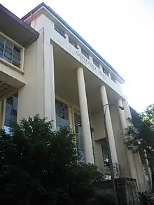 During World War II, most of its colleges had to be closed except the Colleges of Medicine, Pharmacy, and Engineering. Meanwhile, the Japanese Imperial Army occupied three Diliman campus buildings: the College of Liberal Arts Building (now Benitez Hall) and the Colleges of Law (now Malcolm Hall) and Business Administration Building. The Japanese also occupied the campus of the College of Agriculture in Los Baños.[22] U.P. President Bienvenido Ma. Gonzalez sought a grant of ₱ 13 million from the US-Philippines War Damage Commission. A massive rehabilitation and construction effort was executed during the post-war years. For the first time, an extensive Diliman campus master plan and map were created in 1949. More buildings were built across the Diliman campus landscape: the University Library (Gonzalez Hall),[23] the College of Engineering (Melchor Hall), the Women's Residence Hall (now Kamia Residence Hall), the Conservatory of Music (Abelardo Hall and now the College of Music), the Administration Building (Quezon Hall), and the U.P. President's Residence. Most colleges and administration offices were temporarily housed in huts and shelters made of sawali and galvanized iron.