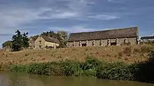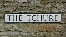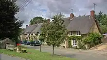 In about 1400[3] or shortly thereafter[2] New College had a tithe barn built at Manor Farm in the village. Its plan is 120 feet (37 m) by 24 feet (7.3 m),[2] it is of nine bays and built of coursed rubble with ashlar quoins and buttresses.[3] The roof is of Stonesfield slate and has raised-cruck trusses.[4] The building has similarities with tithe barns at Swalcliffe[4] and Adderbury,[2] both of which were also built for New College early in the 15th century. It is a scheduled monument[5] and a Grade I listed building.[4]