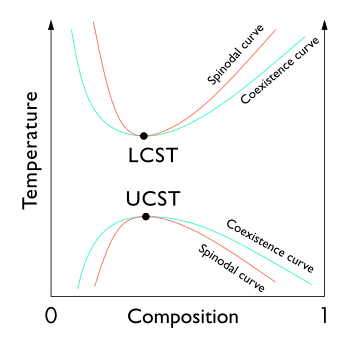 The UCST and LCST of polymer mixtures generally depend on polymer degree of polymerization and polydispersity.[6]