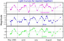 Light curves for Upsilon Sagittarii, adapted from Malcolm and Bell (1986)[4]