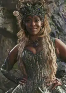 Ursula the Sea Goddess appears in the third season, where she is voiced by Yvette Nicole Brown. In the episode "Ariel", she is described as a sea goddess whom no one has seen for a thousand years. According to Ariel, Ursula gave merfolk the ability to gain legs once a year, when the tide is highest. Ariel uses this ability to visit Prince Eric at his castle, where he is having a ball honoring Ursula. Later, the Evil Queen (Lana Parrilla) disguises herself as Ursula in order to make a deal with Ariel and trick her into capturing Snow White. This physical disguise includes short white hair and tentacles, similar to Ursula's animated appearance. Although the Queen considers Ursula to be "a long-dead octopus", she is shocked when the real Ursula possesses a statue and warns the queen not to impersonate her again.