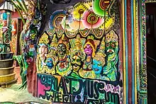 [1] Village life of yesteryear North Karnataka is showcased at Utsav Art Garden. Along with murals related to Agriculture, various Artisans of Villages like Weavers, Handicraft workers, Lambani Artists and such are placed at the Garden. There's a small lake, with Boat-Rides. Food options include the local flavor of Jowar Roti,palya, assortment of chutney powders, curds, bhutti, holige and other Indian varieties.