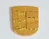 The coat of the arms of the Västernorrland Regiment (I 21/Fo 23) 1977–1994 and the Ångermanland Brigade (Ångermanlandsbrigaden, NB 21) 1994–2000. Blazon: "Per pale azure, the provincial badge of Ångermanland, three salmons naiant in pale, the middle one sinister set, armed gules, and the provincial badge of Medelpad; with waves four times divided, azure, argent, gules, argent and azure. The shield surmounted two muskets in saltire or".[24] The coat of arms of the Västernorrland Regiment (I 21/Fo 23) 1994–2000 and the Västernorrland Group (Västernorrlandsgruppen) 2000–2004. Blazon: "Per pale azure, the provincial badge of Ångermanland, three salmons naiant in pale, the middle one sinister set, armed gules and the provincial badge of Medelpad; with waves four times divided, azure, argent, gules, argent and azure. The shield surmounted two swords in saltire or".[24]