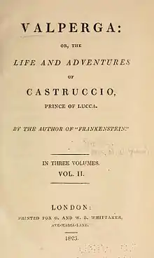 Valperga: or, the Life and Adventures of Castruccio, Prince of Lucca is an 1823 historical novel by the Romantic novelist Mary Shelley, set amongst the wars of the Guelphs and Ghibellines (the latter of which she spelt "Ghibeline").