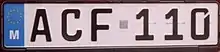 Maltese registration plates are the number plates used within Malta to uniquely identify motor vehicles. Since 1995, the three letter, three number system (ZZZ 999) has been in use in Malta for vehicle registration. The characters are always printed in black on a white background, and to the left one can find a blue box with the Flag of Europe and the letter M (for Malta) underneath it in white. The typeface used on Maltese registration plates is FE-Schrift which is also the typeface used on German vehicle registration plates.