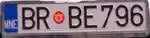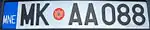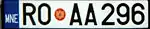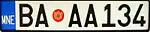 The plate is in following layout: to the left, a blue-colored field contains Montenegro's international automobile code (MNE); continuing in white background, the two-letter code of the municipality where the vehicle was registered in, then the coat-of-arms of Montenegro following by the registration code, which generally consists of two letters followed by three numbers. However, it is possible to pay for customized plates with any letter-number combination.