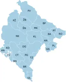 These are the Montenegrin car license plate codes by municipality and in alphabetical order:[1]
