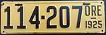1925 | Embossed black serial on yellow plate; "ORE 1925" at right | 123-456 | 1 to approximately 220-000 | |