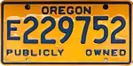 Blue on gold; "OREGON" at top and "PUBLICLY OWNED" at bottom | E226001 to present | ||||