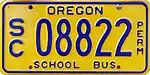 School Bus | Blue on gold; "SCHOOL BUS" at top, "OREGON" at bottom and "PERM" at right | S/C 12345 | S/C 00001 to present | ||