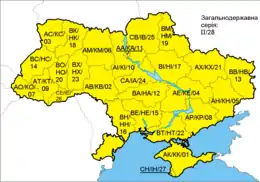 - ↑ "Ukrainian license plate" (JPG). Retrieved 2024-01-07.